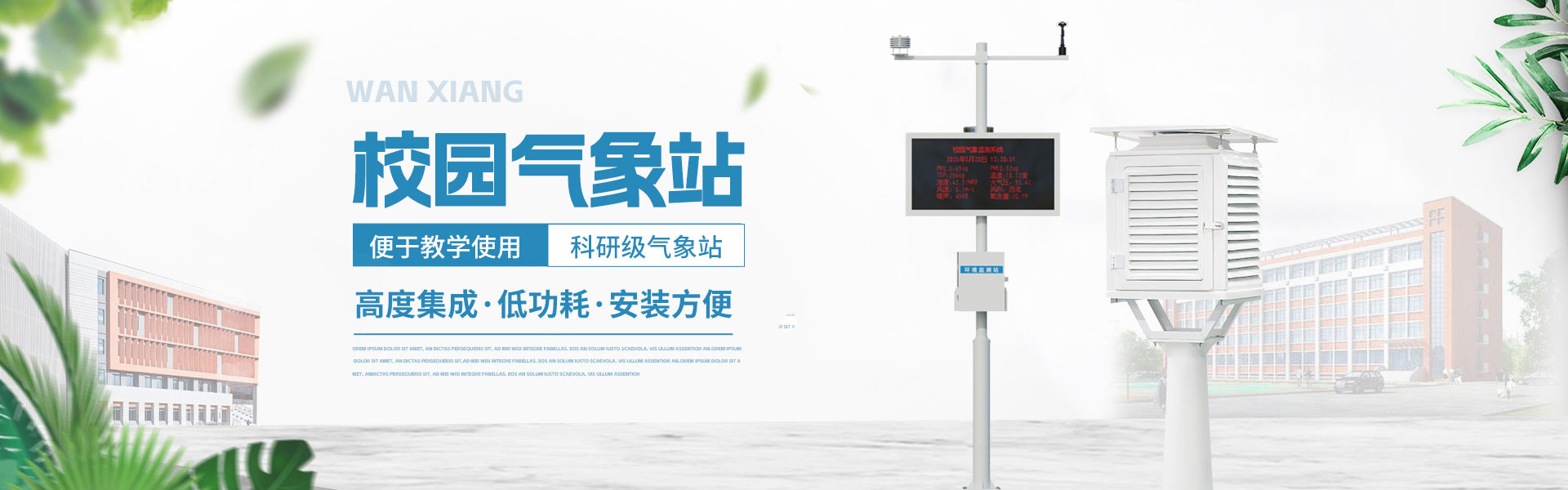 查看更多山東萬象環境科技有限公司官網主要產品有防爆氣象站,校園氣象站,農業氣象站,負氧離子監測站,超聲波氣象站,歡迎咨詢13645368788!